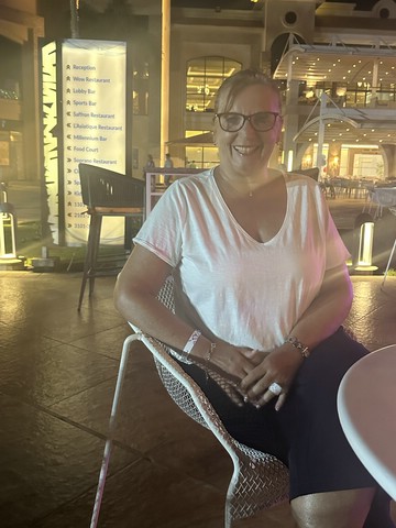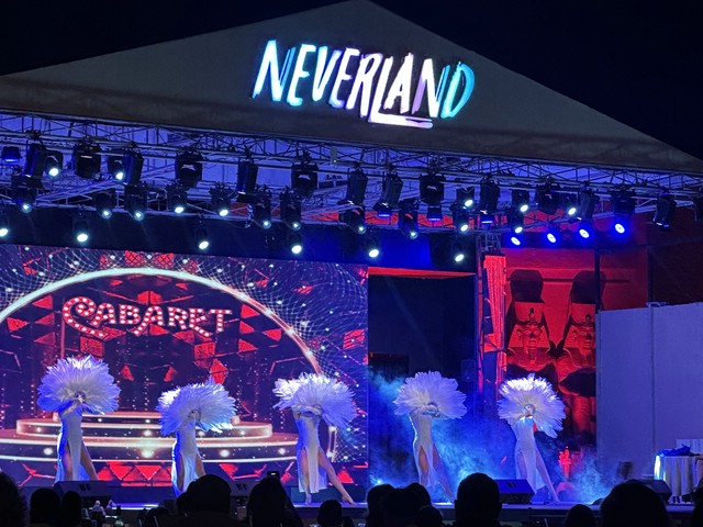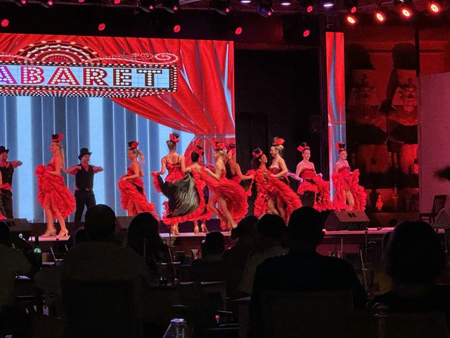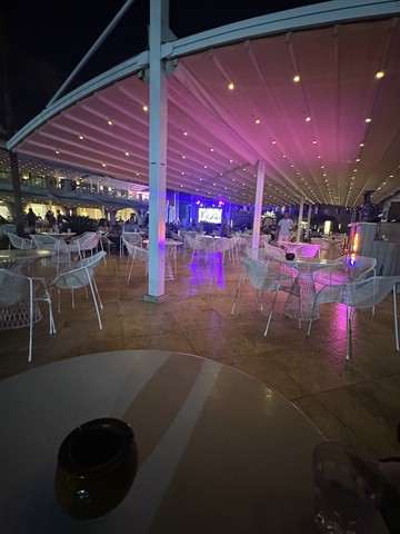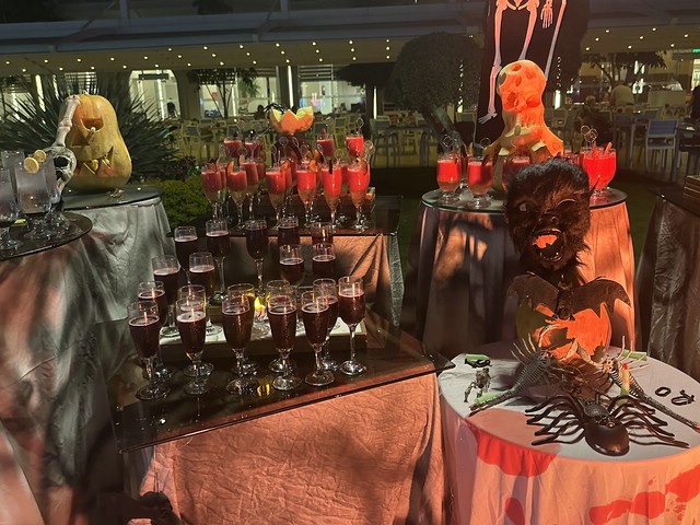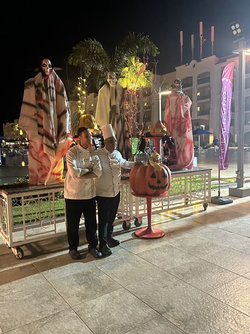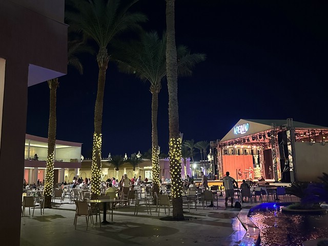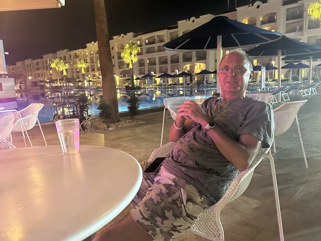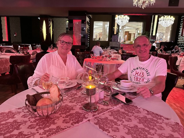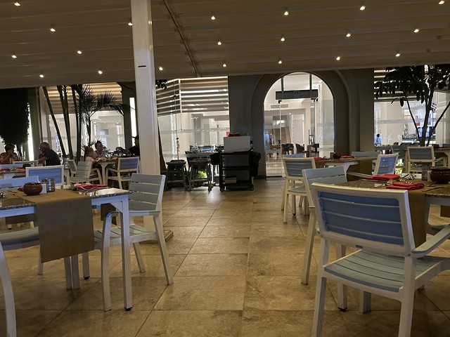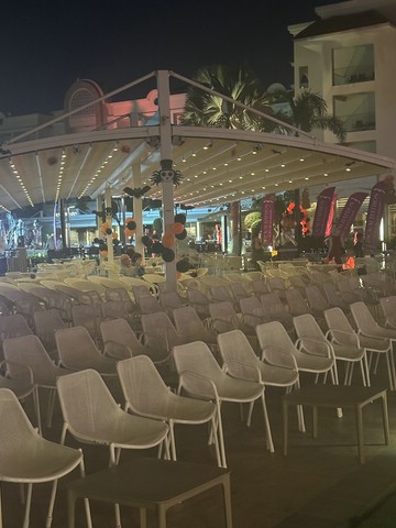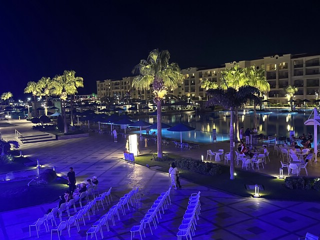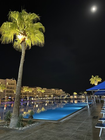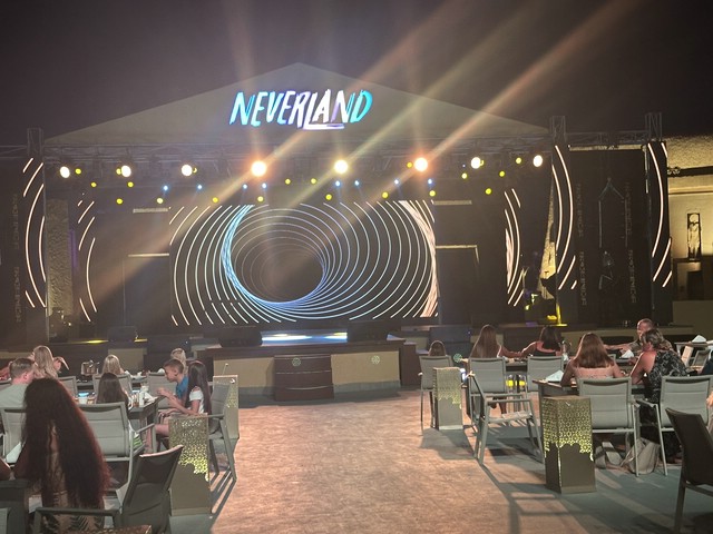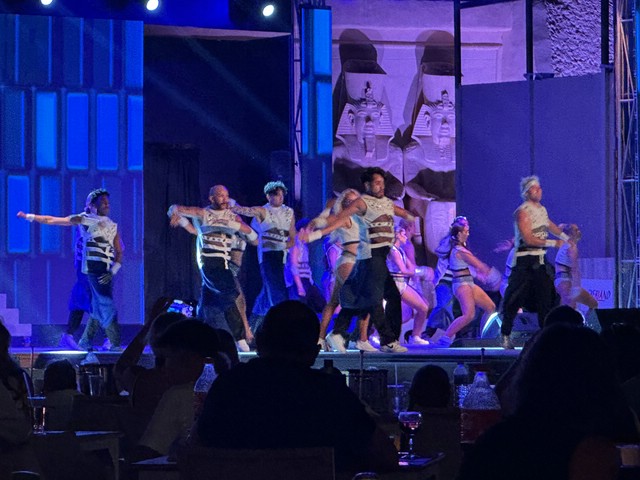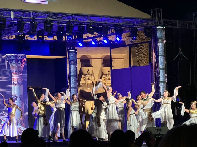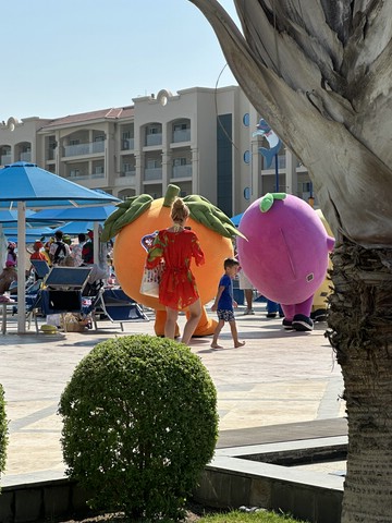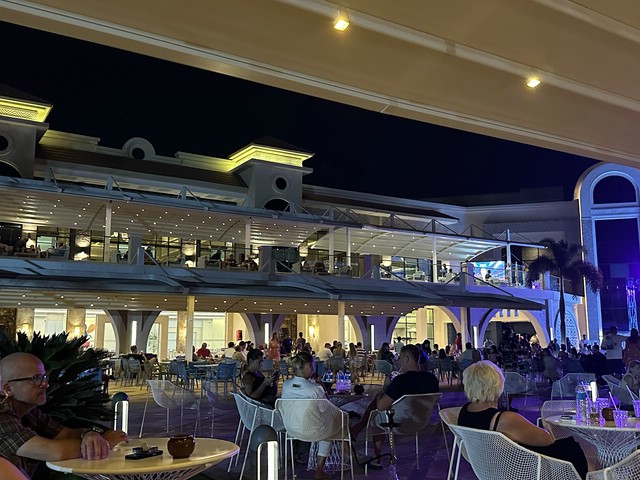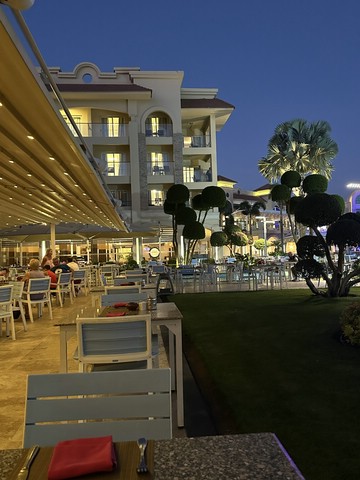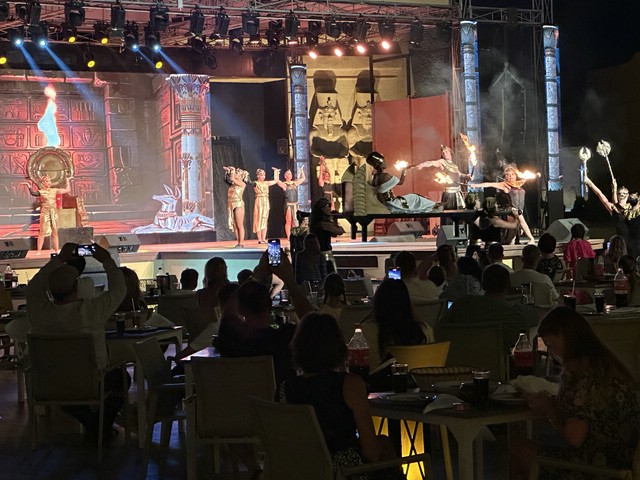 Wie jeden Abend (außer an zweien, dazu später mehr) haben wir meist gegen 18.30 Uhr zu Abend gegessen und später draußen oben an der Lobby Bar gesessen. Von dort aus konnte man die Bühne gut sehen. Kinderdisco wie in allen all-in Hotels und später die „Shows“ – wie würde Achim sagen – semiprofessionell.