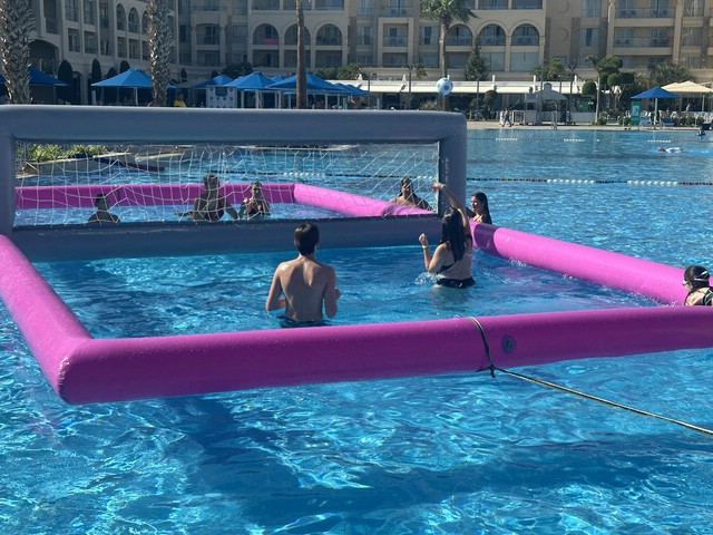viel Geschreie an/in den Pools. Am Strand konnte man dem gut entgehen,