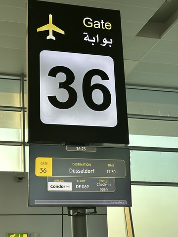 Condor Maschine abfliegen, hatte aber ca. 40 min. Verspätung.