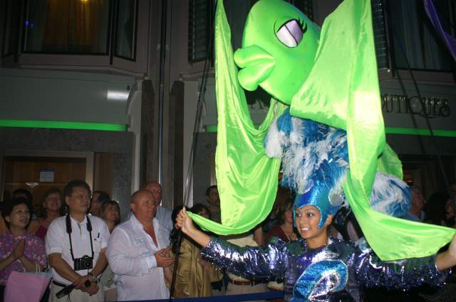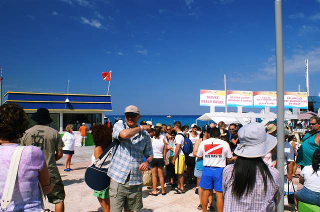 Treff im Theater für die Landausflüge, bevor es in die Tender-Boote nach Cozumel ging. Eigentlich hatten wir vor, für Cozumel nichts zu buchen, sondern einfach nur durch die Stadt zu bummeln. Da aber der Ausflug auf den Grand Caymans ausgefallen ist, haben wir uns entschlossen, eine Schnorcheltour zum Palancar-Riff zu machen.