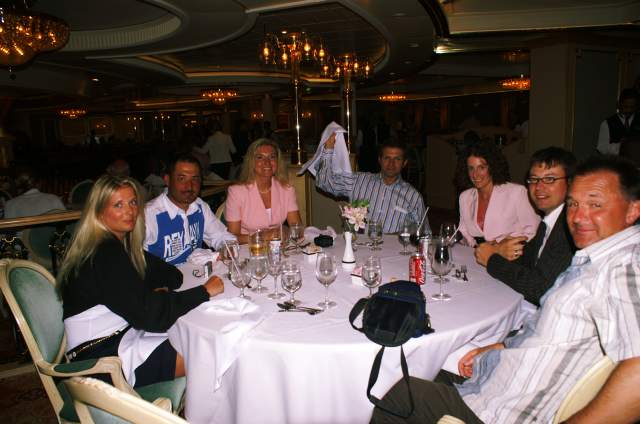 Nach dem obligatorischem Bier im Pub hieß es duschen und sich chic machen den 2. offiziellen Abend. Schon irre, was die Passagiere so alles in den Koffern haben und sich abends aufbrezeln. Macht aber auch Spaß, denn den ganzen Tag läuft man ja leger herum, warum nicht am Abend mal etwas Feines.