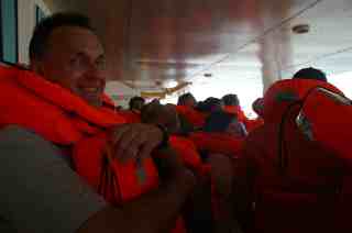 Seegang konnten die Tenderboote nicht am Schiff anlegen und alle