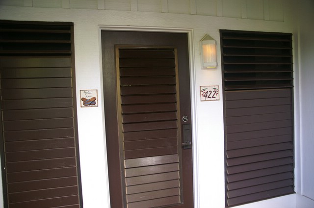 Fenster sind nicht aus Glas, sondern alle mit Fliegengittern und