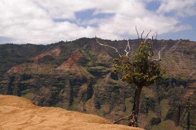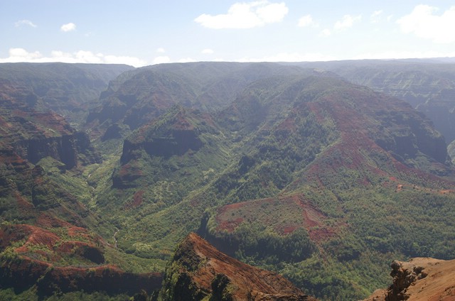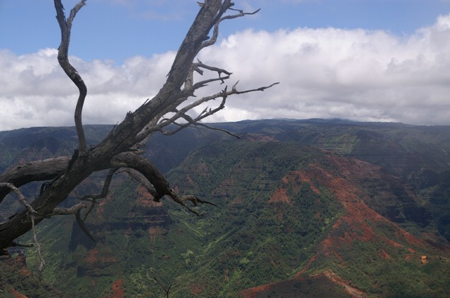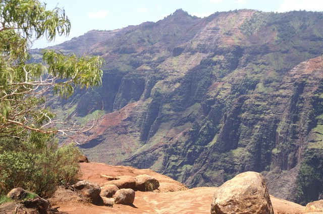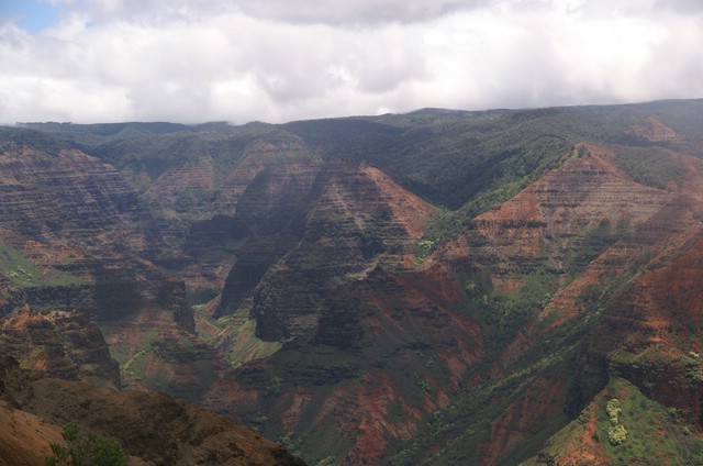 30 Grad, im Waimea Canyon wolkig, ca. 20