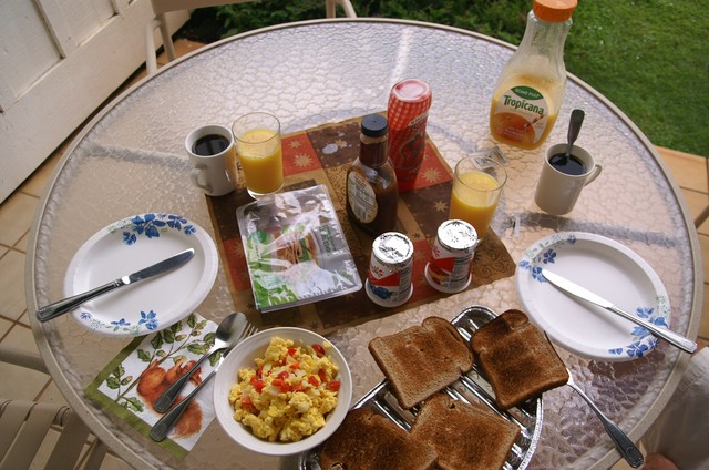 kühlen O-Saft und Toast mit Wurst. Anschließend noch einen