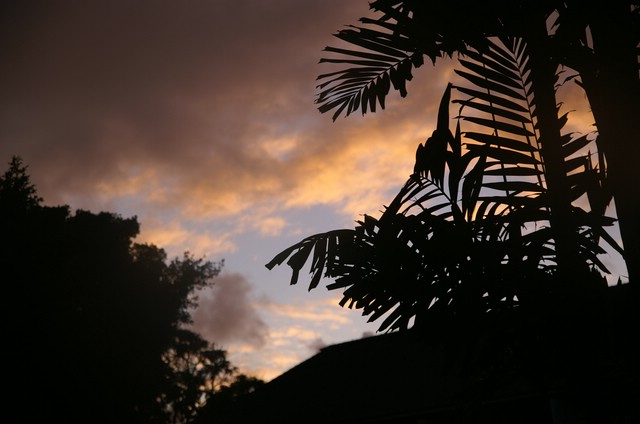 im Garten unseres Zimmer hingesetzt und einen Bacardi Cola in der Sonne