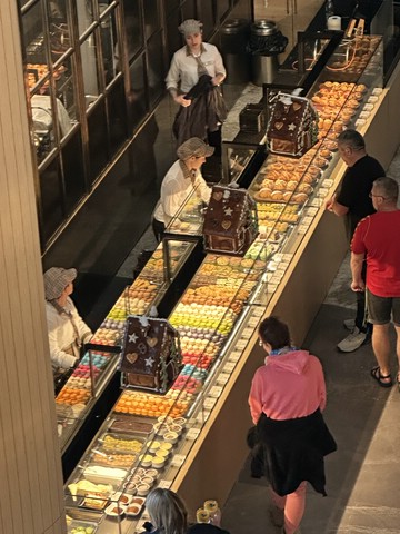 zum Frühstück gehen (gab es nur im großen Restaurant).
