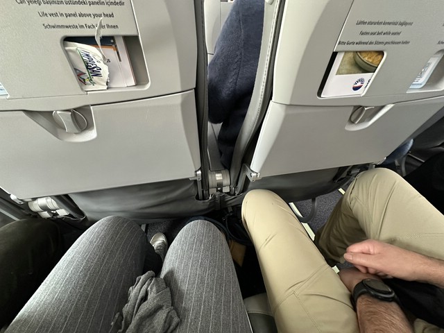 Flugzeug, hob sogar 20 Minuten eher ab. Es war genauso eng wie auf dem